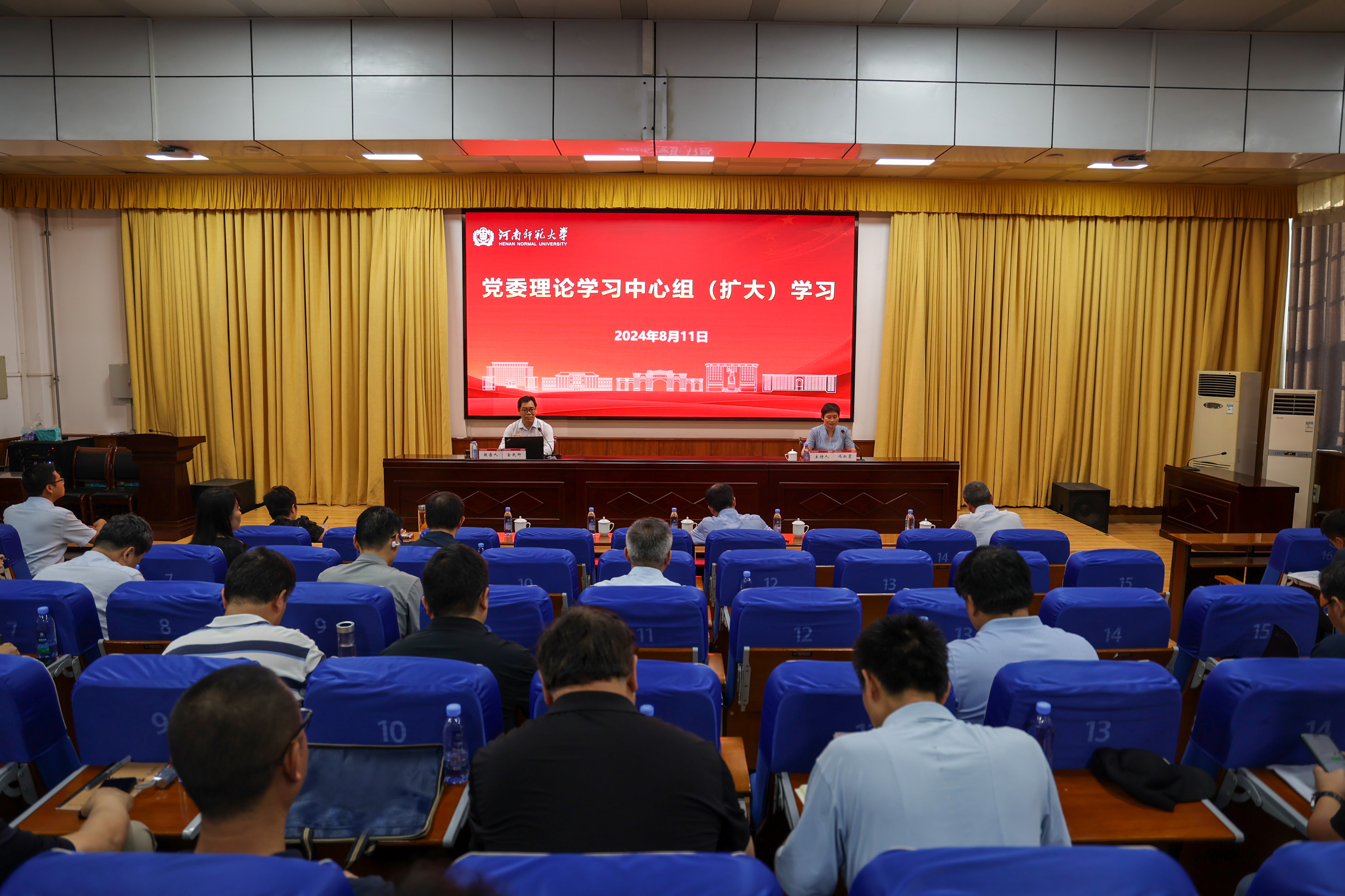 8月11日上午,我校在党校教室召开党委理论学习中心组(扩大)党的二十届三中全会精神专题辅导报告。校党委书记、校长冯淑霞主持会议并讲话,中国社会科学院中国历史研究院党委副书记、纪委书记金民卿教授作专题辅导报告。校党委理论学习中心组成员、学校副处级及以上干部参加学习。