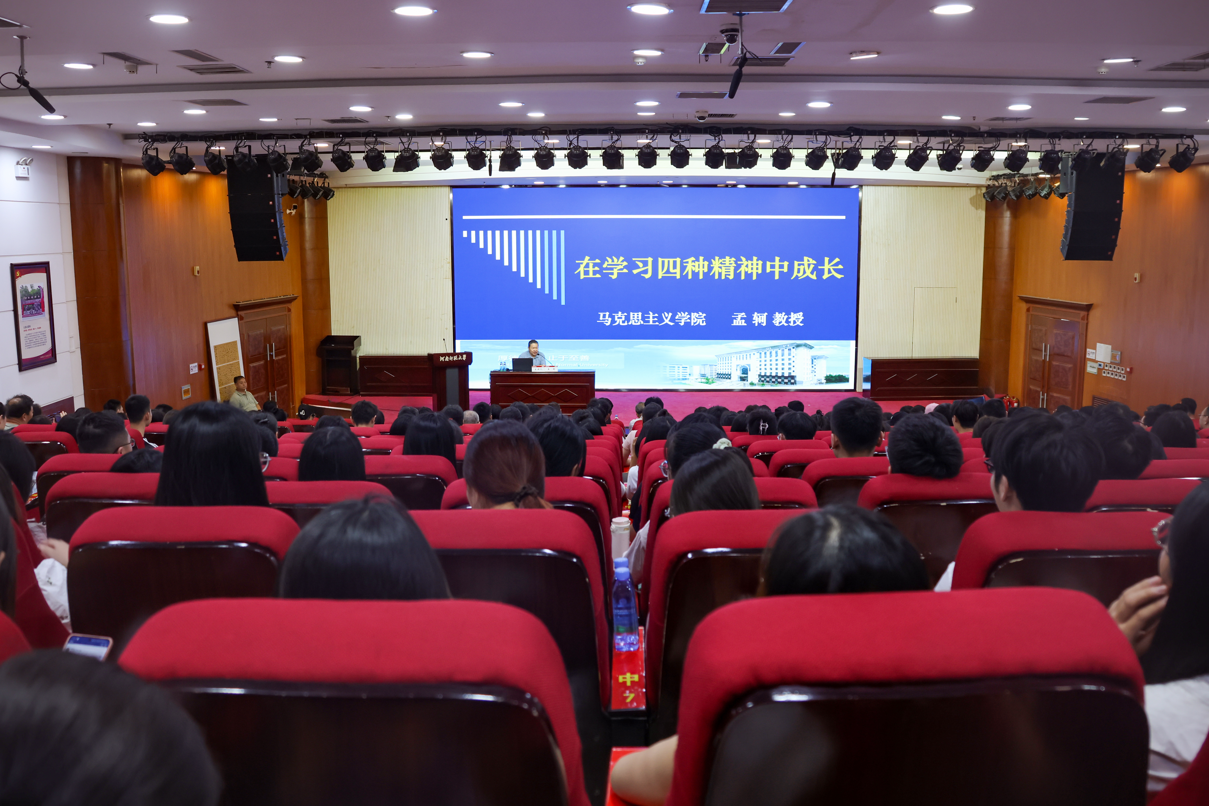 在专题讲授环节,河南省特聘教授,马克思主义学院教授、博士生导师、博士后合作导师孟轲以《在学习四种精神中成长》为题做专题报告。他围绕教育家精神、劳模精神、劳动精神、工匠精神四种精神,结合自身经历,从内涵价值、思想启蒙、榜样学习、助力成长四个方面,勉励现场师生从榜样身上汲取奋进力量,将崇高的精神内化为自己的行动指南,展现出一位大学教师砥砺奋进、自信自强的精神风貌。