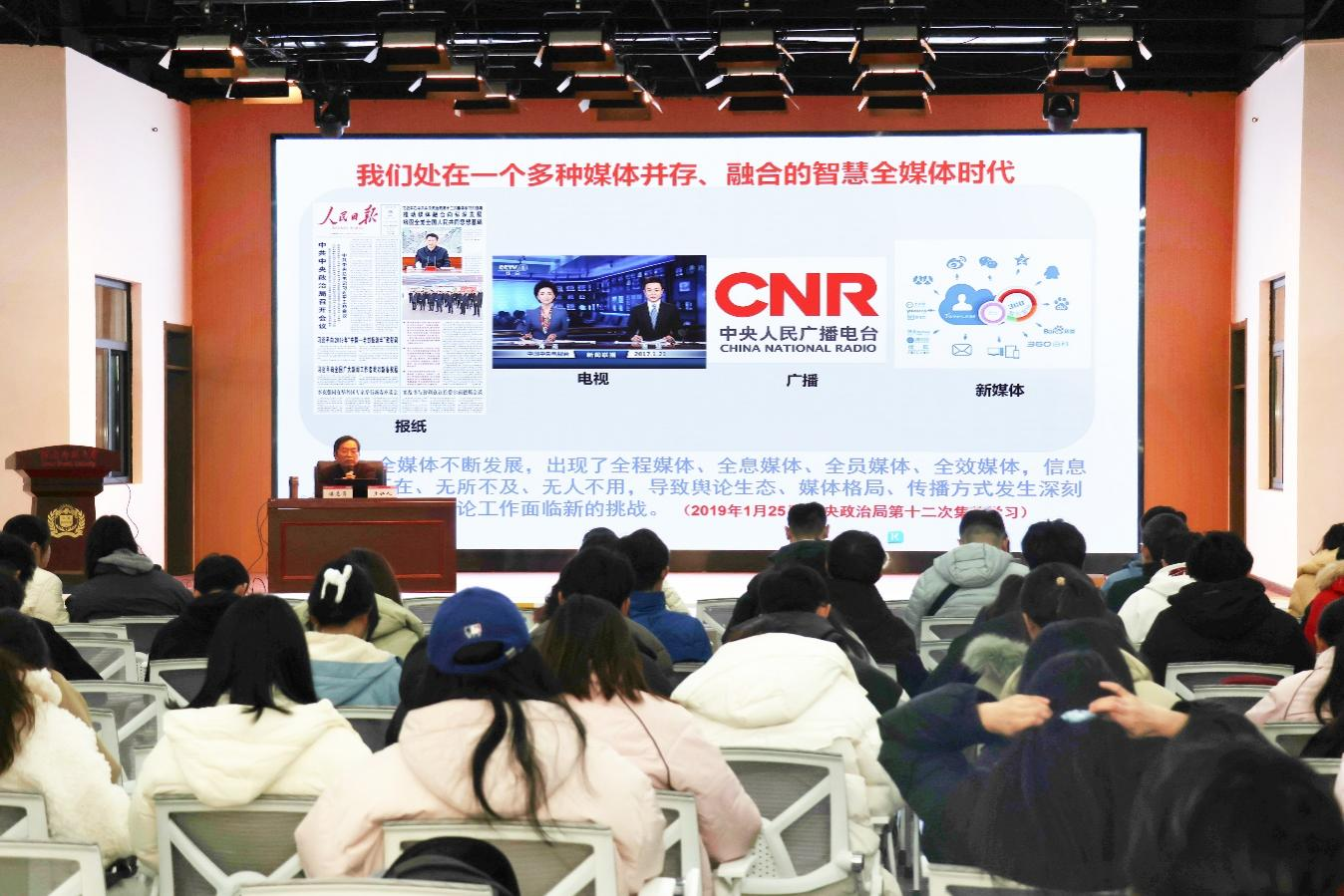 12月16日上午,我校在学苑餐厅三楼青益空间开展“校媒成长计划——记者大讲堂”主题讲座,中国青年报社河南记者站站长、高级记者,河南省青年新闻工作者协会会长,河南省政府特聘督学潘志贤应邀担任主讲人。我校60余名师生到场学习,讲座由党委宣传部副部长、融媒体中心副主任刘吉磊主持。
