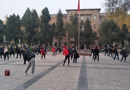 12月9日下午5:00勤政楼广场前,校工会副主席王俊杰为组长的校工会“第九套广播体操”验收组一行,对机关工会教职工“第九套广播体操”练习情况进行了达标验收工作。机关工会60余名教职工参加了此次验收活动。