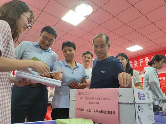 本次竞赛活动设置了“开天辟地:新民主主义革命时期”“改天换地:社会主义革命和建设时期”“翻天覆地:改革开放和社会主义现代化建设新时期”“惊天动地:中国特色社会主义进入新时代”四个环节。参赛老师们在对应的环节现场抽题并作答,答对后获得相应知识竞赛通关卡。比赛中,老师们沉着冷静、反应迅速、积极作答,展示了扎实的党史知识储备和良好的精神风貌,现场竞赛气氛紧张而热烈。大家纷纷表示此次活动设计新颖有趣,不仅丰富了党史学习教育的学习方式,而且对党的历史有了进一步的学习和掌握,达到了以赛带学、学以致用的目的。