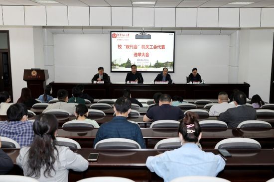 4月21日上午,校“双代会”机关工会代表选举大会代表大会在勤政楼第四会议室顺利召开,机关工会教职工代表参会,大会由机关工会主席高飞主持。