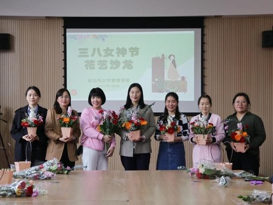 为庆祝“三八”国际劳动妇女节,丰富女教职工的精神生活,3月8日下午,政治与公共管理学院组织学院女教职工于学院办公楼413室开展以“花开三月天,巾帼绽芳华”为主题的“三八”妇女节花艺沙龙活动。