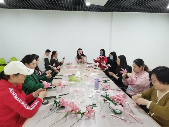 阳春布德泽,万物生光辉。为庆祝第113个“三八国际妇女节”,3月8日下午,软件学院工会在实训楼413会议室举办“春日百合,绚丽绽放”创意手工花制作活动。女工会员积极参与,一起感受节日的快乐。