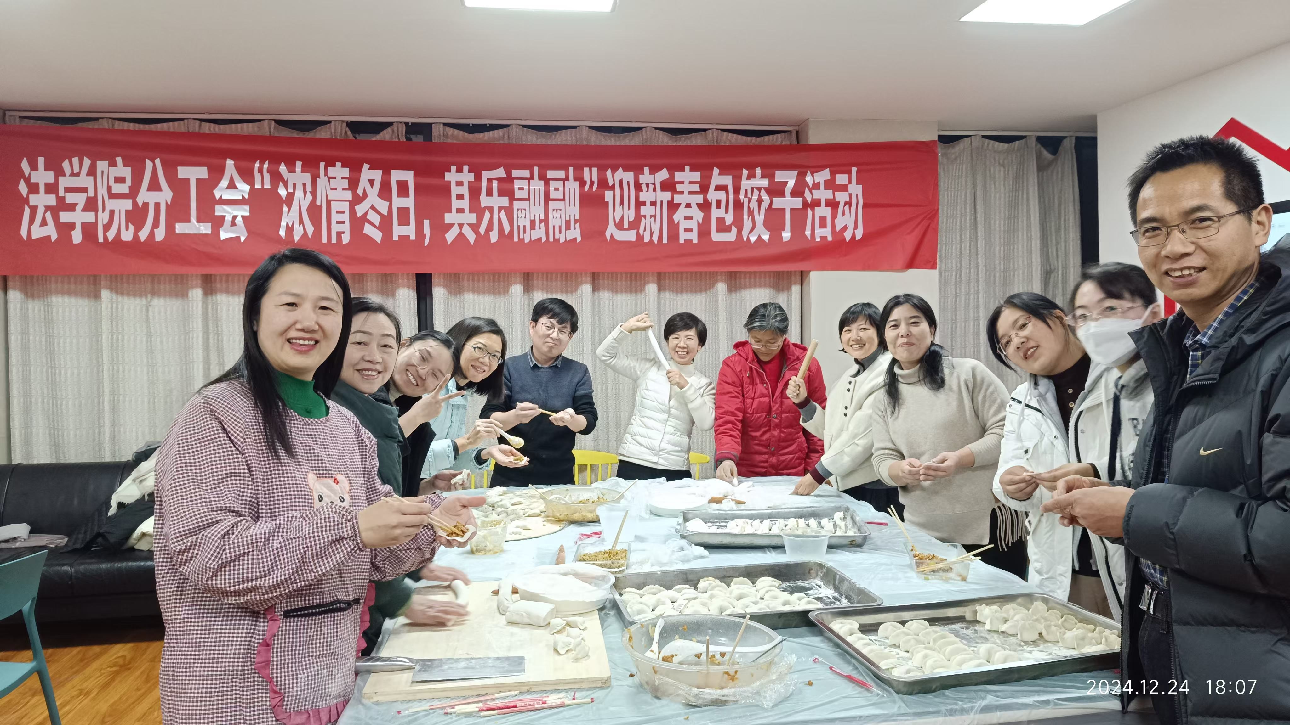 临近元旦佳节,为增进教职工的情感交流,增强教职工凝聚力、向心力,传承中华传统美食文化,12月24日下午,法学院分工会在西校区学术交流中心一楼(近园餐厅)开展“浓情冬日,其乐融融”迎新春包饺子联欢活动。