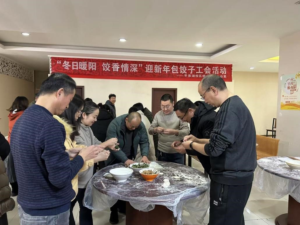 12月30日下午,平原湖校区综合管理办公室在校区味轩食堂二楼营养餐厅开展了“冬日暖阳,饺香情深”迎新年包饺子工会活动。综管办主任马新峰、副主任王虎、刘晨生和全体教职工齐聚一堂,旨在以集体包饺子的方式,传承中华优秀传统文化,让教职工感受到工会大家庭的温暖。