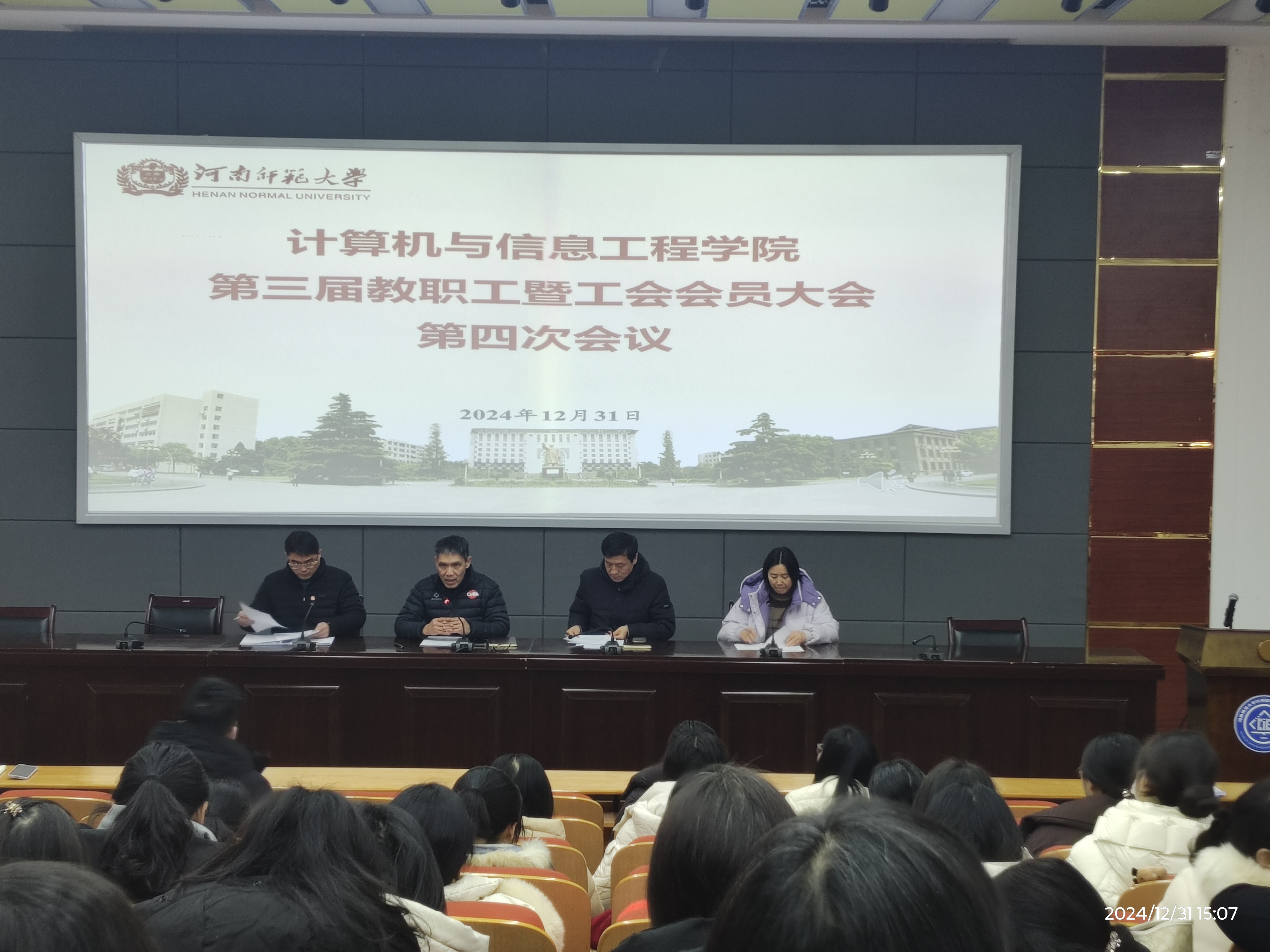 12月31日,计算机与信息工程学院第三届教职工暨工会会员大会第四次会议在计算机楼217报告厅召开,学院全体领导班子、100名工会会员参加会议,会议由学院党委副书记、工会主席陈清利主持。