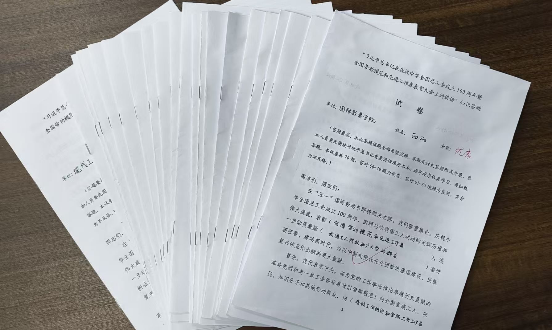 4月28日,党中央隆重举行庆祝中华全国总工会成立100周年暨全国劳动模范和先进工作者表彰大会,习近平总书记出席大会并发表重要讲话。5月份,校工会统筹安排全校教职工认真学习习近平总书记重要讲话精神。本次知识答题活动,是学习习近平总书记重要讲话精神的又一次深化学习行动。当前和今后一个时期,校工会要把学习宣传贯彻习近平总书记重要讲话精神作为重大政治任务,统筹谋划、周密部署,持续深化学习,全面抓好贯彻落实,推动习近平总书记重要讲话精神深入人心、见行见效。