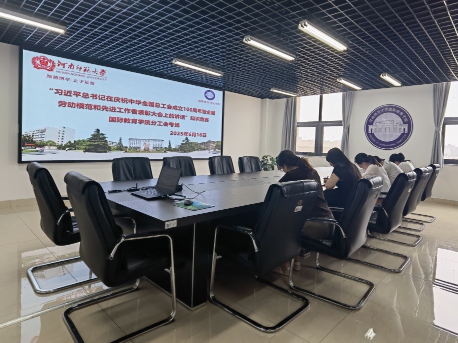 6月16日下午,国际教育学院分工会组织全体工会委员在求真楼709会议室参加校工会举办的“习近平总书记在庆祝中华全国总工会成立100周年暨全国劳动模范和先进工作者表彰大会上的讲话”知识竞赛活动。