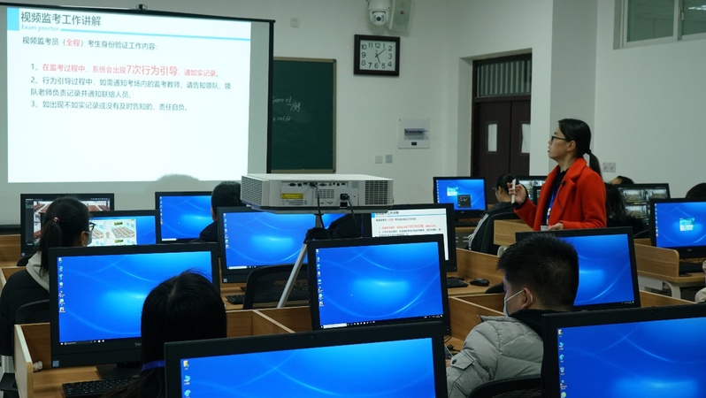 为做好2021年全国硕士研究生招生考试工作,中心自接到任务后,立即成立考试领导小组,及时与研究生院进行对接,做好沟通交流;根据历次工作经验和本次考试的变化及具体要求,精心设计了技术保障方案,将工作人员分成了三个工作组。一是考试运行组,负责整个考试保障工作的统筹和运行,具体包括确定各个工作人员的岗位职责、接受传达上级单位考试信息、身份验证监考员丙和视频监考员以及技术联络人员的培训、督查整个考试各个工作节点任务的完成情况等工作;二是系统管理与维护组,负责标准化考场系统的管理与维护工作,具体包括考场摄像头检修、摄像头角度校准、UPS电源测试、逻辑考场与物理考场对应、与上级互连互通、网络调试、标准化考场录制调试与启停、配合主考完成网上巡查工作、考试录像的留存与上报等工作;三是身份验证组,负责考生身份验证和视频监考的技术保障工作,具体包括组建身份验证网络系统、身份验证设备的检查与数据写入、视频监考系统的安装调试与监考权限分配、主考审核系统的安装与调试、考中各系统突发问题的解决、身份验证及视频监考记录单的收发、身份验证数据的留存和上报等。本次考试分工周密细致,工作人员尽职尽责,充分发扬精益求精的工作精神,高质量保障了此次考试的顺利进行,监考员和考生零违纪零违规。