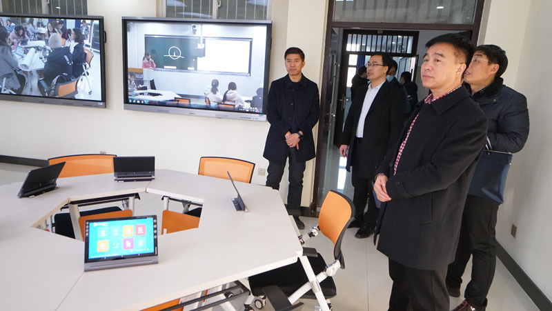 座谈会结束后,梁存良及中心各部门负责人一起陪同刘长河一行到中心智慧教学演播室、虚拟教学演播室及教学资源制作部参观考察,然后到东区文昌楼的智慧教室、研讨教室、标准化考场巡查指挥中心、多媒体教室及督导听课室进行了实地考察。刘长河一行对我校的现代化教学设施建设与应用水平以及近年来信息化教学取得的成绩给予了高度评价。双方确定,在今后的工作中,进一步加强交流与合作,为推动信息技术与教育教学融合创新发展共同努力。