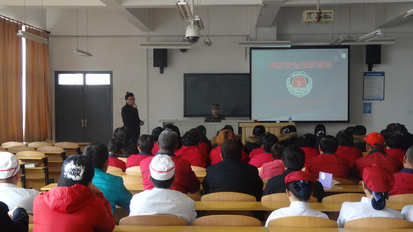 为增强我院务工人员的消防安全意识,提高火灾防范和火灾处置能力, 保卫部于3月24日下午在向真楼321教室举办了消防安全知识讲座,特别邀请经开区消防大队张仲凯参谋做消防知识培训,我院餐厅、物业员工全部参加。