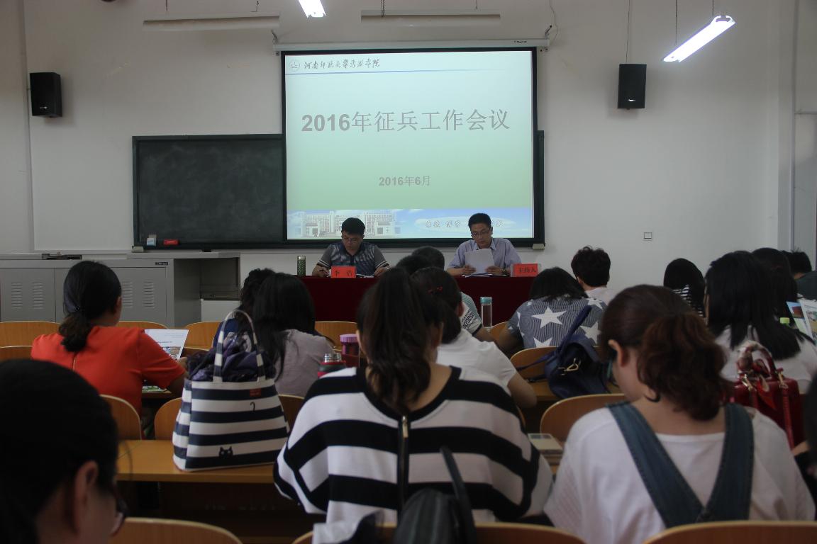 6月14日下午,我院在向真楼103召开了 2016年征兵工作会议。党委副书记李浩出席会议。学院征兵工作领导小组成员单位负责人、各学工办主任、各专业辅导员参加了会议。会议由招生就业处处长刘学杰主持。