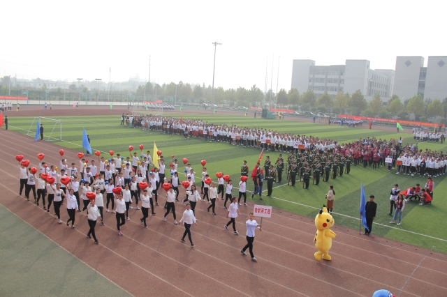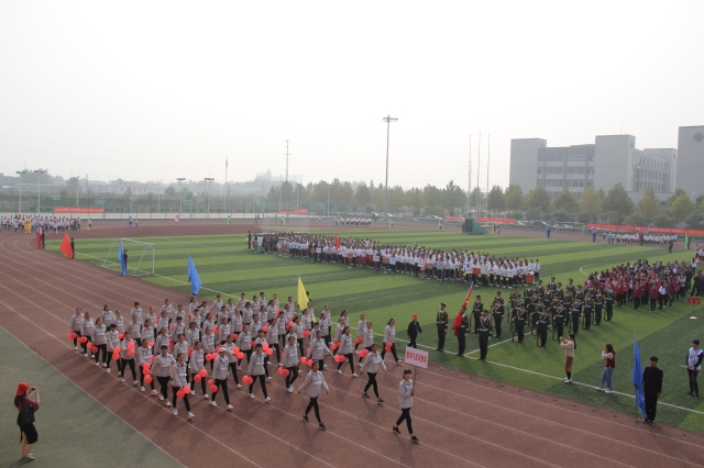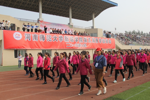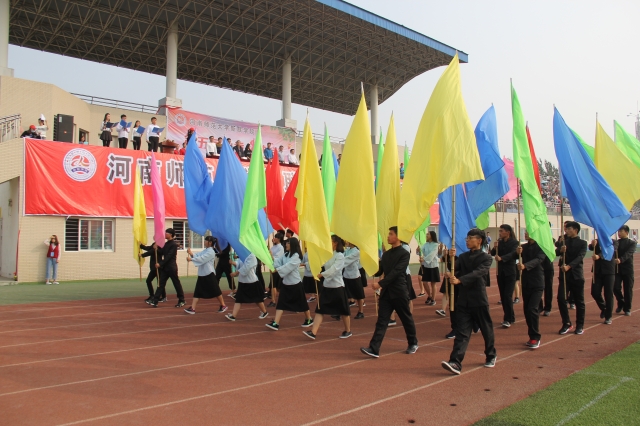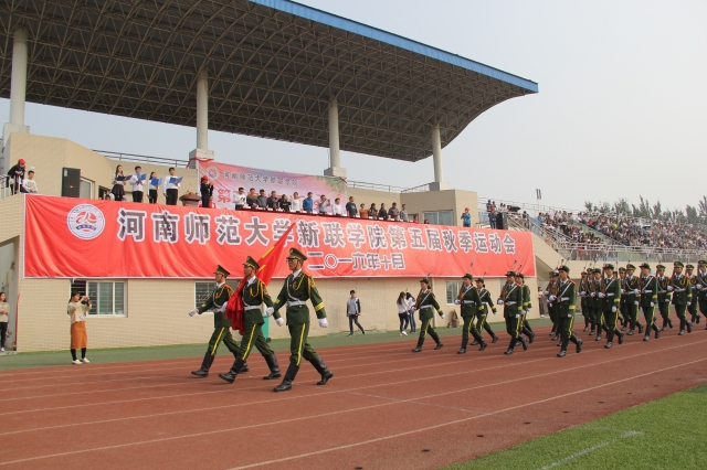 运动场彩旗飘扬,嘹亮的《运动员进行曲》奏响。国旗护卫队、彩旗队、教职工代表队、各学院各专业代表队依次入场。各代表方队队列整齐、精神饱满,各具特色的领队装扮,手持红旗、彩球迈着矫健的步伐,缓缓向主席台走来。展现了新联学院团结奋进、昂扬向上的精神风貌。