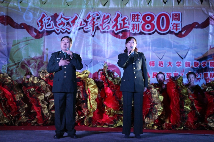 10月22日,新联学院与中国人民解放军71481部队联合成功举办了“弘扬长征精神共筑中国梦想”纪念红军长征胜利80周年文艺晚会。司训大队大队长尚永新、政治处主任卢常海、训练处副处长刘亚豪、保障处副处长刘运波、新联学院团委书记王潭、音乐教师李春桥、张妹姝、团委全体老师以及部队全体官兵、军属近500人观看了演出。