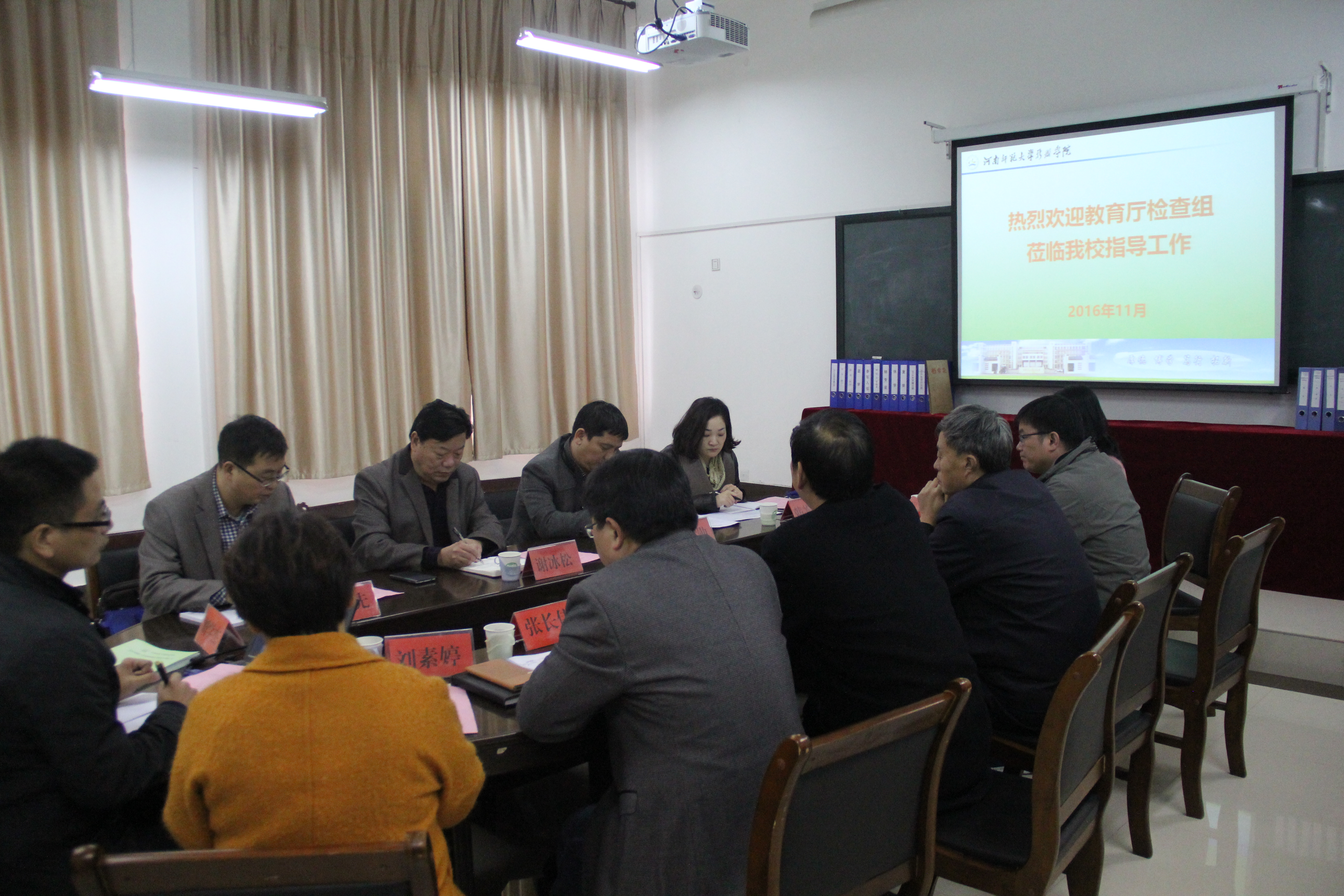 11月1日下午,河南省教育厅新生入学资格复查及学籍学历管理工作检查组谢冰松、张世勋、贾宝先、韩苏苏等一行到我院检查指导工作。我院党委书记张永胜、党委常务副书记段其旺、党委副书记李浩、副院长张长伟等出席了汇报会。会议由党委副书记李浩主持。