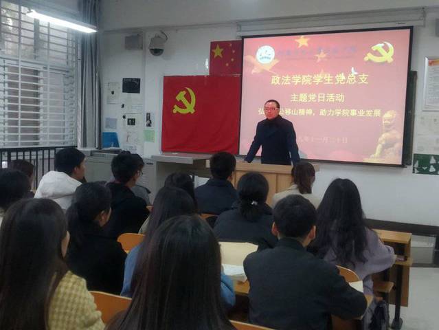 为深入贯彻落实 “不忘初心、牢记使命”主题教育,加强党员初心使命意识,11月20日中午,政法学院党总支于向心楼107开展“弘扬愚公移山精神,助力学院事业发展”主题党日活动,出席本次会议的有政法学院学生党支部全体党员及入党积极分子。
