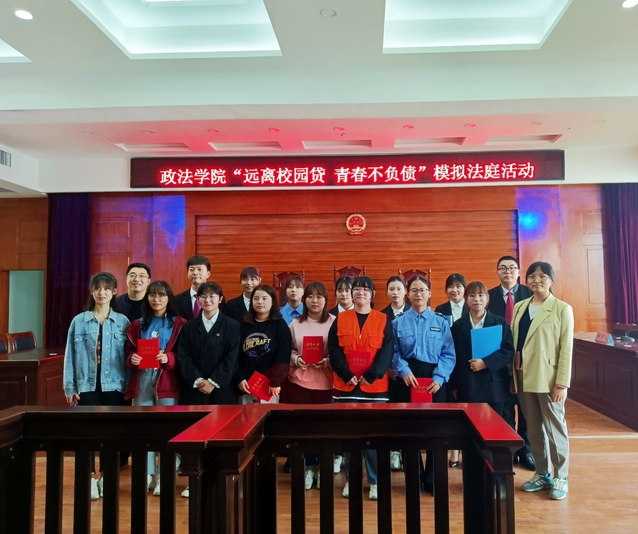 为普及法律知识,提高大学生的法律意识及辨别是非的能力,进一步提升大学生法律素养,增强大学生风险意识和责任意识,有效遏制非法“校园贷”和电信诈骗等违法现象在高校的生存空间。政法学院于4月22日中午在向知楼504教室举办“远离校园贷,青春不负债”模拟法庭活动。党委保卫部部长郭衍普、党委学工部副部长王星举应邀出席,政法学院全体教师和各专业学生参加了本次活动。