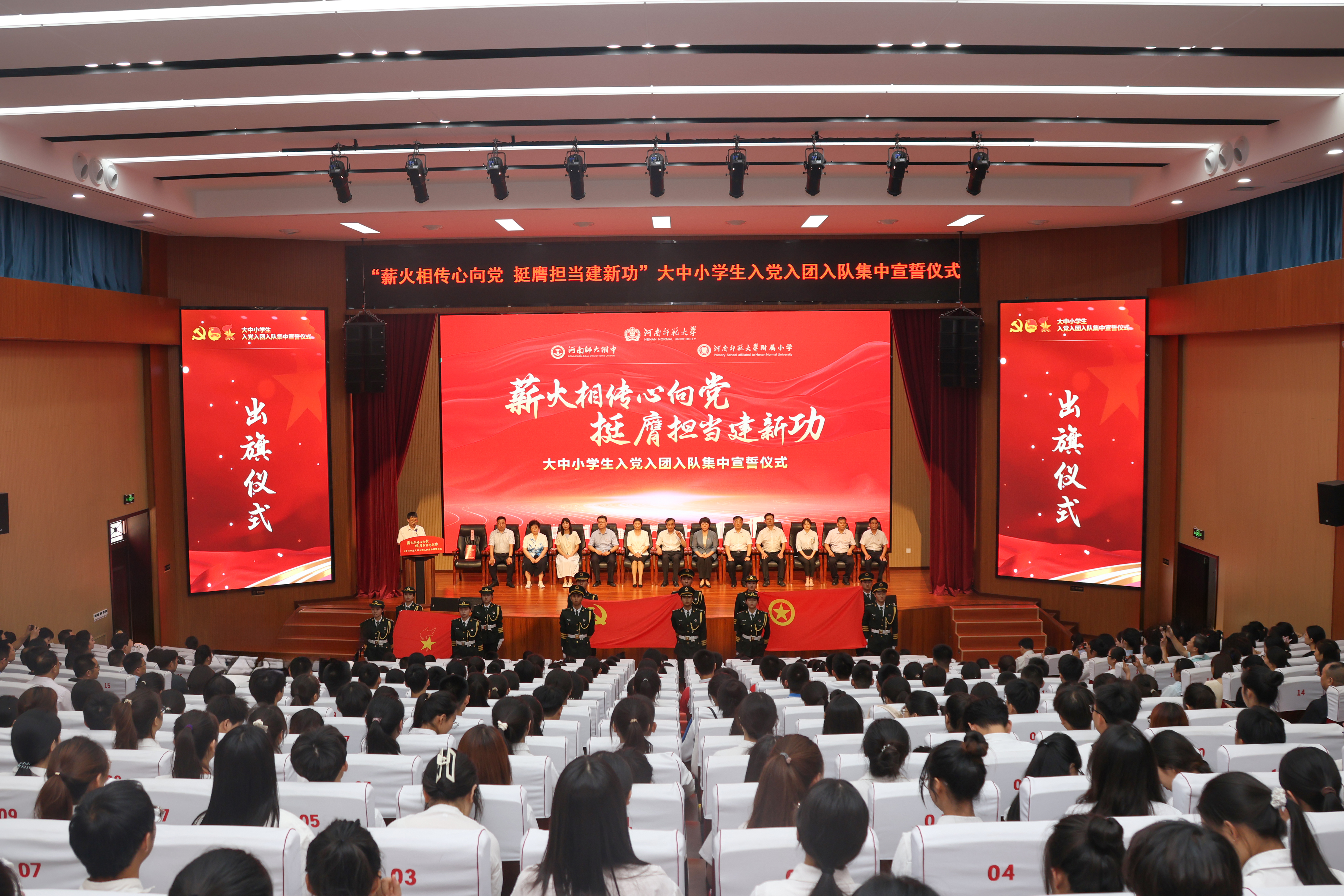 河南省教育厅一级巡视员何秀敏寄语 为深入学习贯彻习近平总书记重要讲话精神,推进大中小学生思政一体化建设,推动党团队育人链条相贯通,6月26日下午,“薪火相传心向党 挺膺担当建新功”大中小学生入党入团入队集中宣誓仪式于我校附属中学道德讲堂举行。河南省教育厅一级巡视员何秀敏,共青团河南省委二级巡视员、河南省少工委常务副主任韩冰,我校党委书记、校长冯淑霞,党委常委、纪委书记、监察专员王玉良,党委常委、副校长苗雨,河南省教育厅组织干部处处长、一级调研员王飞,共青团河南省委高校部四级调研员孙颖,共青团新乡市委副书记高敏出席仪式。学校有关单位负责人、2024年上半年新入队队员、新发展团员、新发展党员、学生家长、师生代表参加。仪式由校党委副书记张尚字主持。 集中宣誓仪式在庄严的国歌声中正式开始,国旗护卫队队员护送党旗、团旗、队旗庄严入场。苗雨宣读了2024年上半年大中小学生入党入团入队名单。与会领导嘉宾为新入队队员、新发展团员、新发展党员代表逐一佩戴红领巾、颁授团徽徽章和党员徽章。 在我校附属小学大队辅导员欧菲菲、优秀团员代表刘佳怡、优秀党员代表孔祥会的带领下,新入队队员、新发展团员、新发展党员面向队旗、团旗、党旗依次庄严宣誓。大中小学生代表集体致献词。 河南省大中小学思政课一体化建设专家指导组组长、河南省少工委副主任、河南师范大学马克思主义学院党委书记、院长蒋占峰教授分享了他的入队入团入党故事,为在场师生讲授了一堂生动的微思政课。 冯淑霞以“薪火相传 使命在肩”为题,为新队员、新团员、新党员提出希望与要求,她勉励同学们,一要坚定理想信念,补足精神之钙。沿着革命先辈的光荣路程,坚定不移听党话、跟党走,扣好人生第一粒扣子,为一生的奋斗奠定基石。二要牢记初心使命,勇担时代之责。自觉将个人奋斗的“小我”融入时代发展的“大我”之中,用实际行动践行“请党放心,强国有我”的铮铮誓言。三要坚持艰苦奋斗,锤炼立身之本。在火热实践中锤炼意志品质、培养创新能力、练就过硬本领,争做堪当民族复兴重任的时代新人。 在各位同学即将开启人生新篇章的重要时刻,何秀敏深情寄语新队员、新团员和新党员。希望新队员们从小学先锋、长大做先锋,在学校里做一个好学生,在家庭中做一个好孩子,在社会上做一个好少年,为红领巾增添光彩;希望新团员们秉持“党有号召,团有行动”的光荣传统,争做有理想、敢担当、能吃苦、肯奋斗的新时代好青年,奋力书写为中国式现代化挺膺担当的青春篇章;希望新党员们筑牢信仰根基,弘扬伟大建党精神,接好强国建设的接力棒,让革命薪火代代相传。 仪式在《没有共产党就没有新中国》慷慨激昂的歌声中落下帷幕。 此次“薪火相传心向党 挺膺担当建新功”大中小学生入党入团入队集中宣誓仪式,是推动我校党团队育人链条相连接、大中小思政教育相贯通的重要举措,进一步提升了大中小学生入党入团入队仪式教育的实效,凝聚和强化了学生们的政治认同,有利于广大青少年坚定理想信念,明确责任担当,走好追求政治进步的“人生三部曲”。 (校团委 孙琳娜 党委组织部 李 霜/文 大学生记者 田家璐 郑思宇/图) |