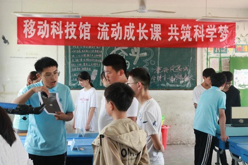 7月11日上午,物理学院“互话心灵助成长”志愿服务队在团队指导老师的带领下,来到了周口市扶沟县吉鸿昌中学,开展了一系列实践活动。 活动现场,“大风车”乐高实验、“天文科普”等一系列充满趣味的物理实验装置吸引了众多学生的目光。队员们通过生动有趣的讲解和演示,将复杂的物理原理以直观、易懂的方式展现给大家,让学生们在轻松愉快的氛围中感受到科学的魅力。接着,队员们进行了科学家精神宣讲,讲述了科学家们的奋斗历程和卓越贡献,以此激励学生们树立远大理想,勇于探索未知领域。在宣讲过程中,学生们与宣讲成员积极互动,纷纷表示要以科学家为榜样,努力学习科学文化知识,为祖国的繁荣富强贡献自己的力量。随后,队员们发放了心理健康调研问卷,旨在了解该校学生的心理健康状况,为后续的心理健康教育和辅导提供有力支持。问卷内容涵盖了学习压力、情绪状态、人际关系等多个方面,同学们积极响应并认真填写。