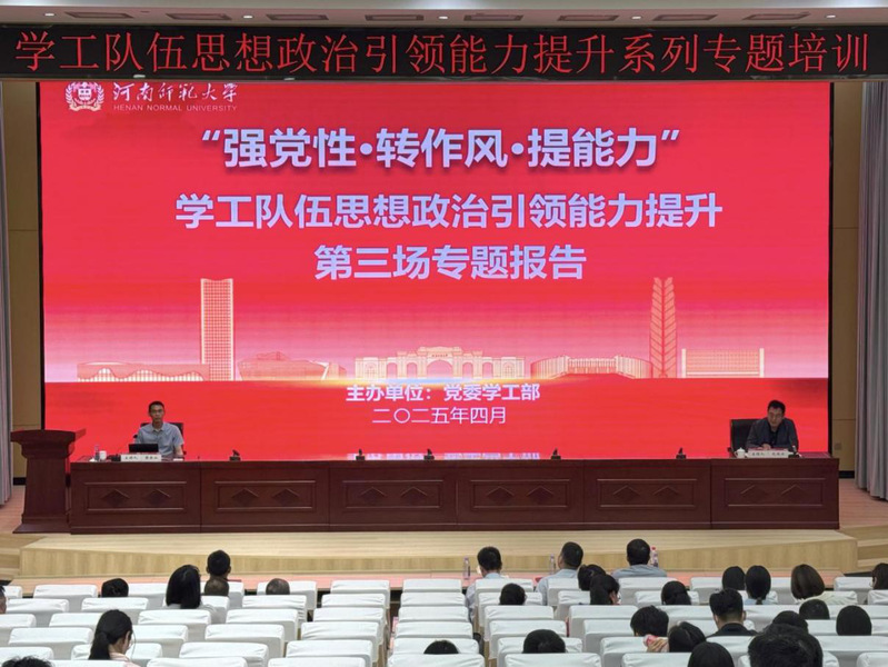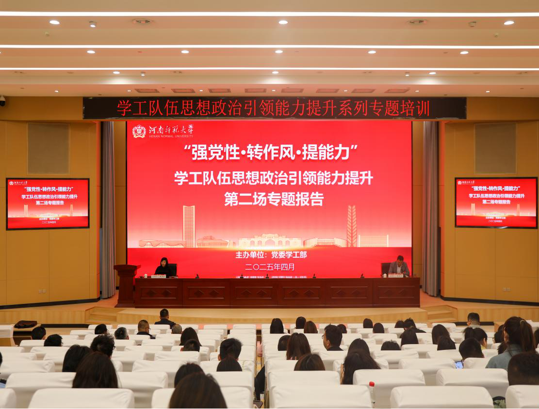 4月17日下午,我校学工队伍思想政治引领能力提升第三场专题报告在求真楼五楼东报告厅举行。中共河南省委党...