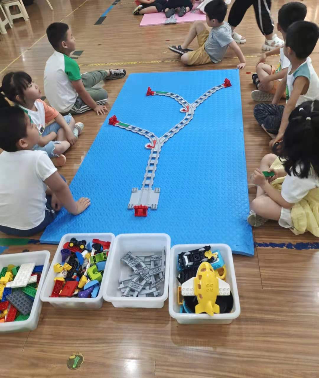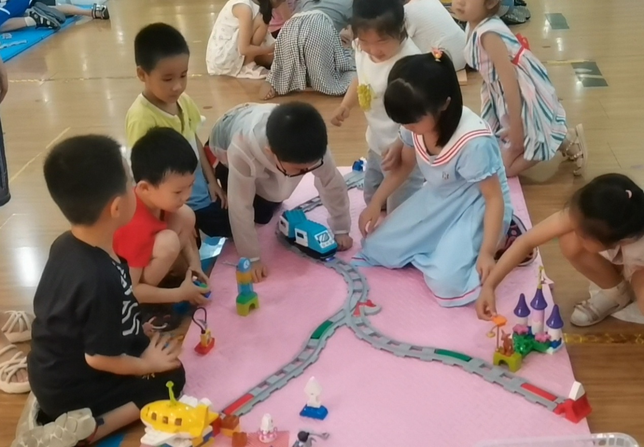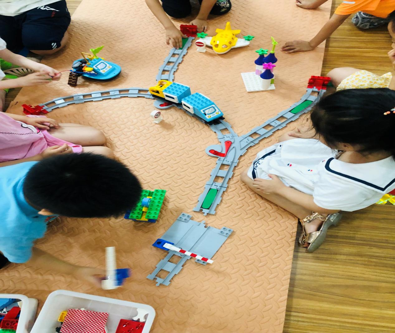 乐高活动是以乐高积木为载体,将乐高和生活中的知识结合在一起,以发现、探究的模式,让孩子在主动学习、探究问题的过程中,获得解决问题的能力。在“玩”的过程中,探索、发现属于他们的世界,在自由搭建乐高的过程中发挥想象力、创造力。6月30日——7月2日连续三天,大班年级组开展了“乐高”展示活动,邀请家长朋友们前来观摩。本次活动展示,以《编程小火车》为主要内容,在搭建环形、Y型轨道的基础上,进一步提升至双Y型轨道 ,感知绿色感应板的不同功能,以及在生活中的运用。
