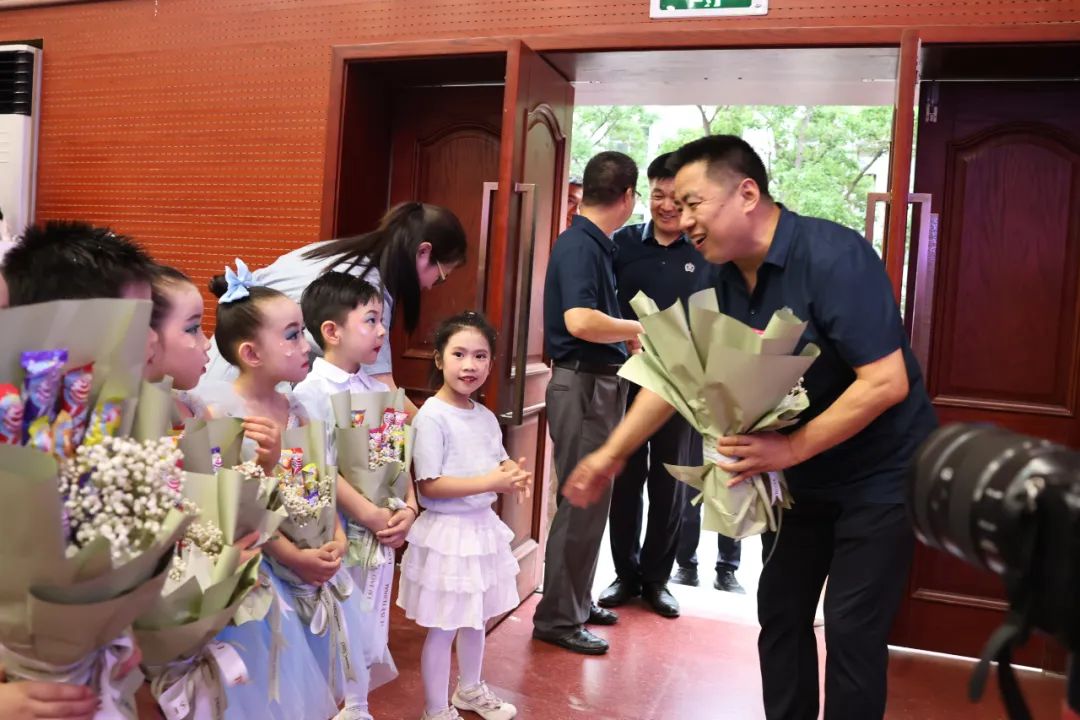 张书记向本次活动倾注心血的小朋友、老师及家长致以诚挚的感谢,他强调,基础教育集团将始终与各方携手,共同把教育落实好,将教育理念转化为扎实行动,持续完善教育细节、全面落实育人目标。孩子们身着整齐的服装,脸上洋溢着自信与期待的笑容,这一刻,他们用自己的方式,为幼儿园生活画上一个完美的句号。毕业典礼在欢快的开场舞中拉开帷幕,孩子们灵动的舞姿、甜美的笑容,将现场观众带入充满童真与欢乐的世界。全体毕业生迈着整齐的步伐走向舞台,接受领导的祝福,领取人生中的第一张毕业证书。小小的证书,承载着幼儿园三年的成长印记,更是开启未来小学生活的通行证。交接仪式上,李校长和常园长为孩子们送上最真挚的祝福,共同携手这场温暖的成长接力。