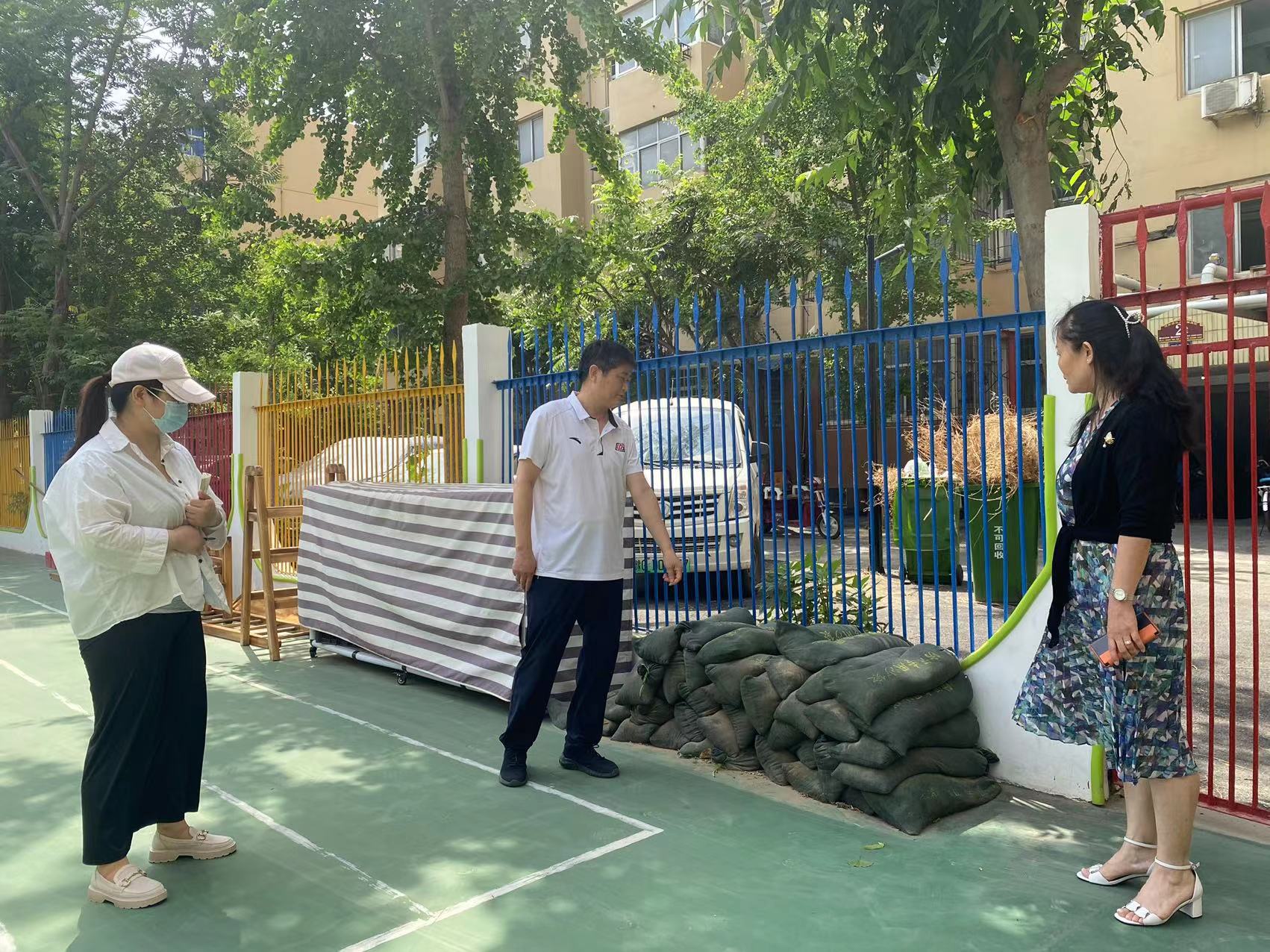 6月8日上午,校纪委副书记李杰、直属单位党委副书记朱守宏等一行4人,在幼儿园党支部书记、园长常利芹的陪同下,现场检查指导幼儿园防疫、防汛工作。