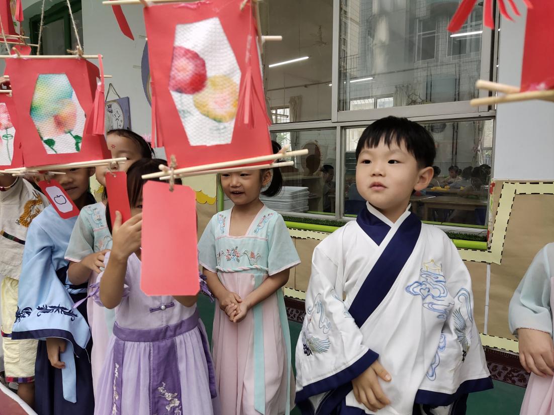 走进中秋,即以“画、做、趣、品、秀、送、赏”多种形式,开展班级主题活动。如猜灯谜、汉服秀、灯谜会、品月会、制作月饼等,通过实际操作、亲身体验,感受节日丰富的文化蕴涵。