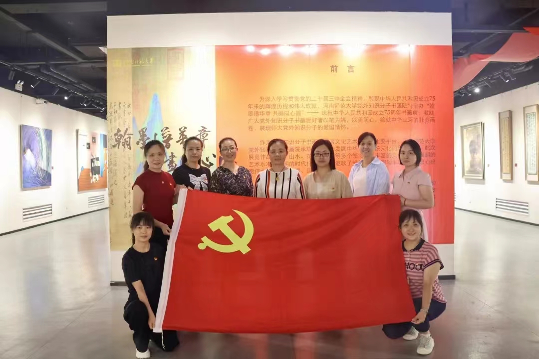 9月20日上午,幼儿园党支部书记常利芹带领党员到河南师范大美术学院,参观由河南师范大学党外知识分子书画院举行的“翰墨普华章 共话同心圆”—庆祝中华人民共和国成立75周年书画展。