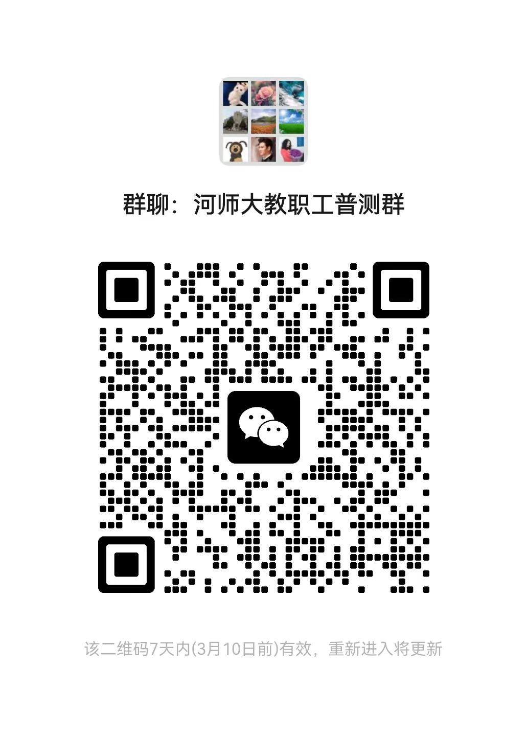 在校教职工 请自行加入微信群“河师大教职工普测群”
