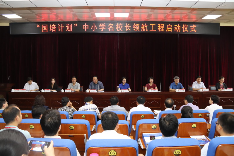 7月11日上午, “国培计划”中小学名校长领航工程河南师范大学培养基地举行启动仪式暨第一次集中培训。教育部中小学校长和幼儿园园长专家指导小组秘书长黄贵珍、教育部中小学校长和幼儿园园长国家级项目培训管理办公室副主任于维涛,河南省教育厅副厅长毛杰、河南省教育厅人事处副处长丁建志、师范教育处副处长肖向毅、河南省教育干部培训中心主任王丽君、河南师范大学党委书记赵国祥、副校长李学志等相关领导参加了启动仪式。参加启动仪式的还有全国各地的七位名校长及领航工程的理论导师、实践导师。
