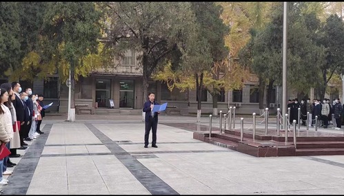 齐聚红旗下,歌舞颂党恩。学院学生在国旗下依次献上合唱《追寻》、舞蹈《万疆》。紧接着,学院全体专兼职辅导员朗诵《启心·起航》为全体同学同上 “国旗下的思政课”。随后,学院党委书记侯帅以“以党的二十大精神为指引 让青春在新征程中绽放绚丽之花”为主题发表讲话。他对同学提出三点希望:一是要走上新的起点,树立远大的理想追求,要让理想之火照亮新征程上青春奋进的脚步;二是要瞄准新的目标,肩负起民族复兴的重任,要把个人命运融入党和人民事业的洪流之中,扛起新一代民族儿女如山的青春责任;三是要唱响时代之音,修炼强国有我的过硬本领,以党的二十大精神为指引,让青春在新征程中绽放绚丽之花。全体师生深受鼓舞,纷纷表示,将坚定理想信念,用实际行动展担当、显作为,为国家贡献青春和力量,不负韶华、只争朝夕。