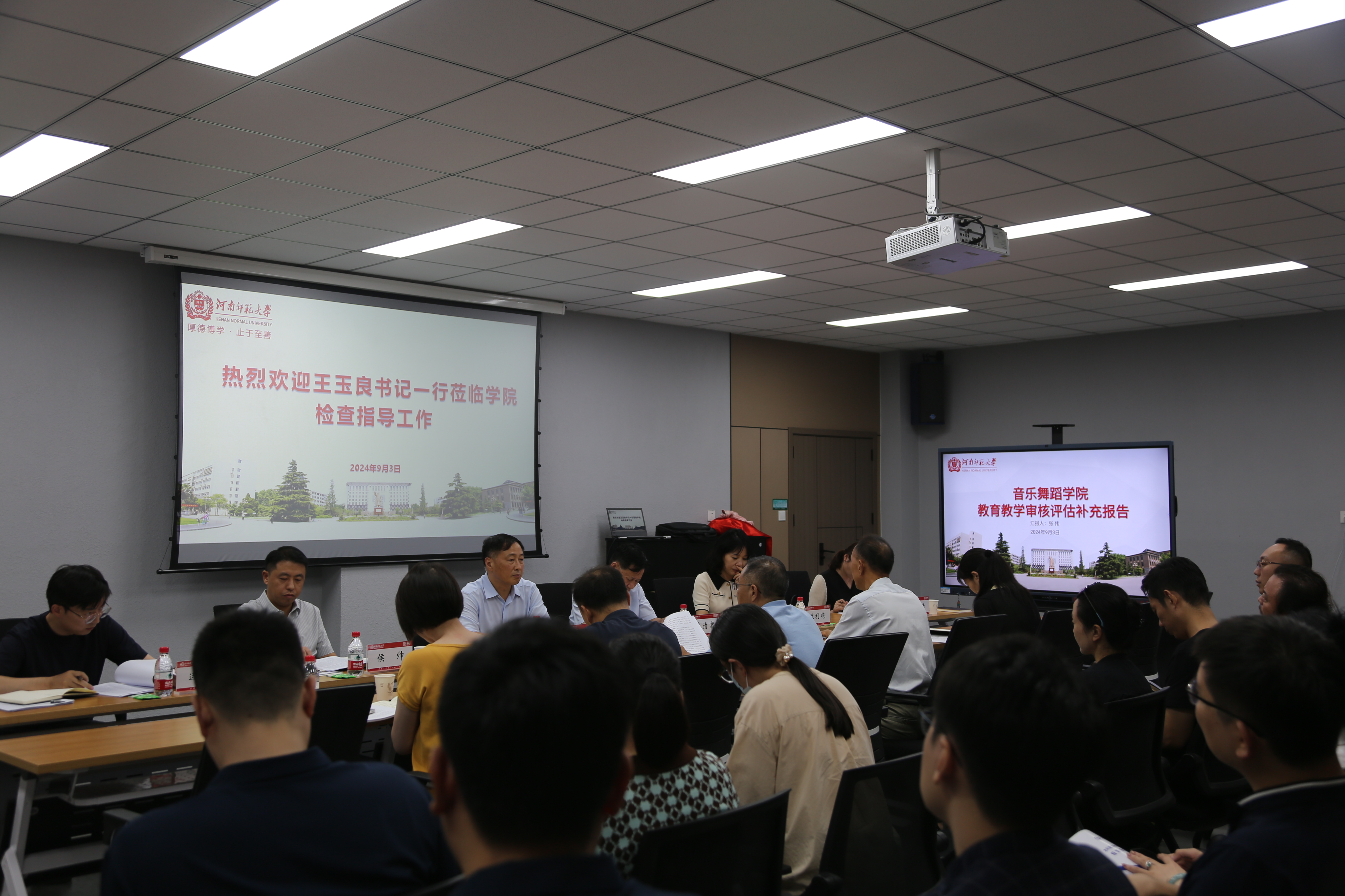 王玉良对学院发展和审核评估工作提出了指导意见和具体要求。他指出,一要解放思想,主动谋划学院工作。要认真贯彻落实党的二十届三中全会精神,结合学院工作实际,明确发展思路,勇于改革创新,带领学院全体教职工凝心聚力,争取在学科建设、博士点申报、人才引进、专业建设等方面取得新突破。二要以生为本,守牢安全底线。要加强学生日常安全教育,增强学生安全意识,提高学生安全防范技能。同时,坚持以学生成长成才为中心,关注学生心理健康,通过家校协同育人,共同服务学生成长成才。三要高度重视,全力做好审核评估工作。要根据现有问题,责任到人,逐一整改落实,确保本科教育教学审核评估工作顺利完成。