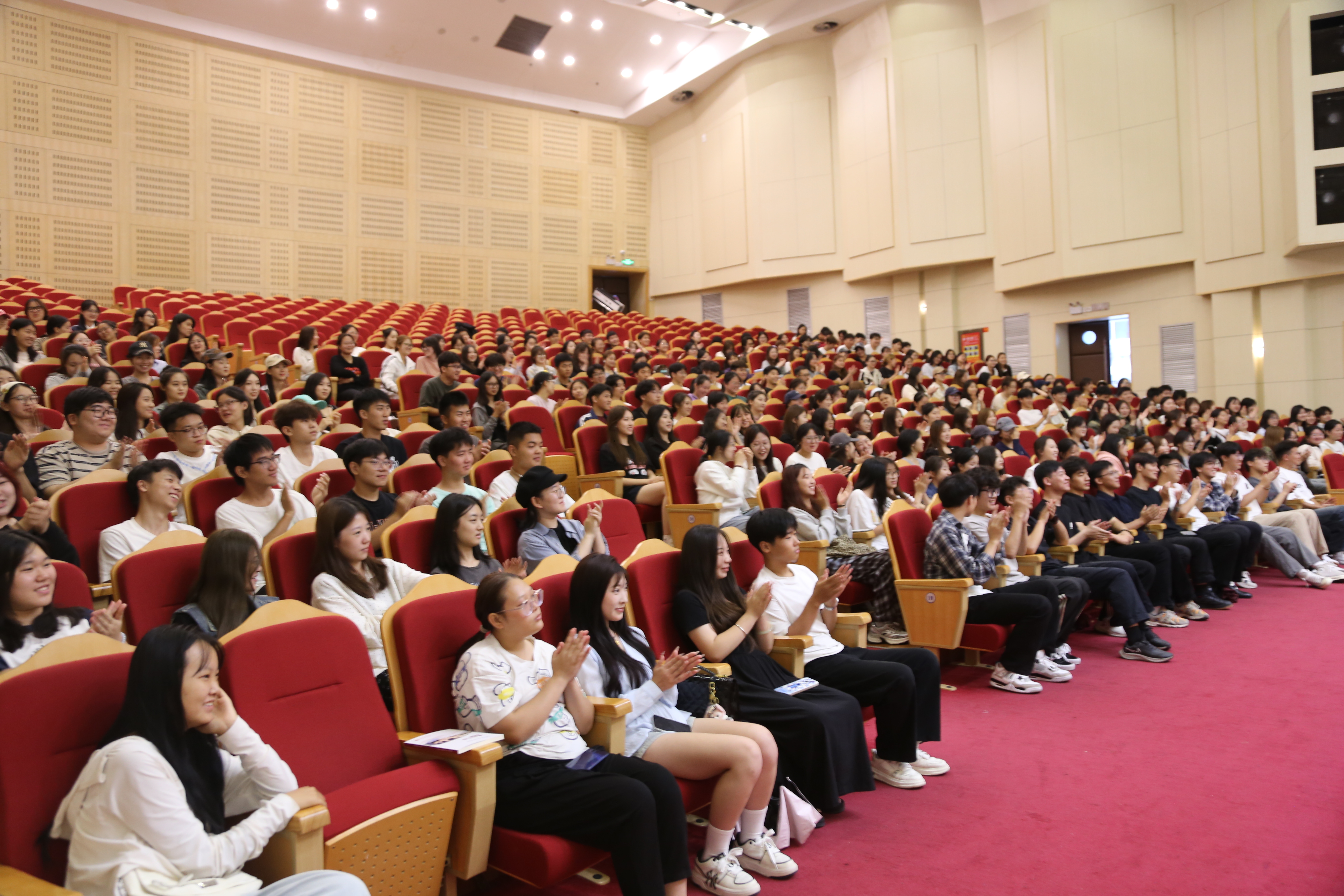 9月10日下午,院长张伟在音乐厅为学院200余名2024级本科新生讲授开学第一课,鼓励同学们坚定理想信念,厚植家国情怀、传承优秀文化,用奋斗书写青春篇章。开学第一课由院党委副书记滕梁莹主持。