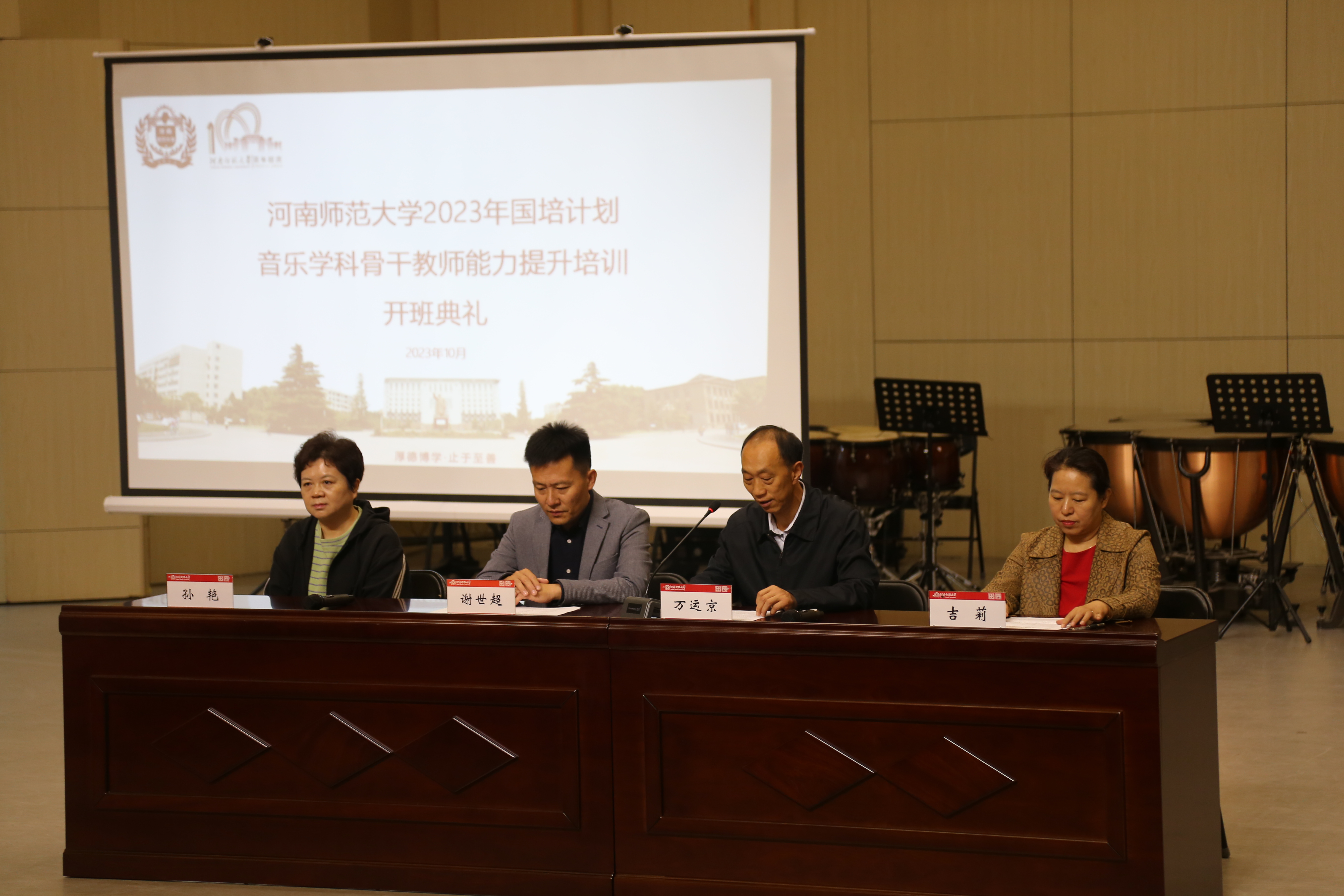10月19日上午,“国培计划”(2023)——河南师范大学音乐学科市级骨干教师能力提升培训开班典礼在帕瓦罗蒂音乐厅举行,院党委书记万运京出席开班典礼,培训班班主任和全体学员参加。开班仪式由副院长谢世超主持。