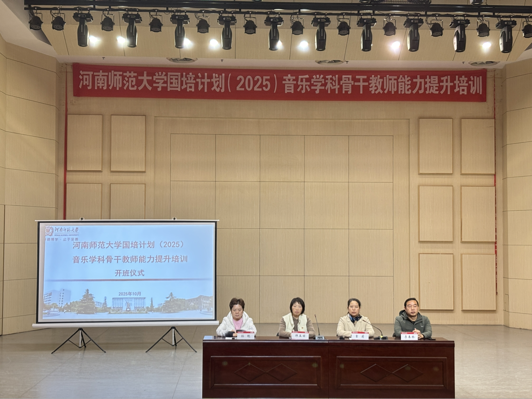 10月21日上午,河南师范大学“国培计划(2025)”农村骨干教师能力提升培训项目音乐学科省级和县级骨干教师培训开班仪式在帕瓦罗蒂音乐厅举行。本次培训分为两个班次,分别是面向初中音乐省级骨干教师的戏曲教学能力提升班,以及面向小学音乐县级骨干教师的歌唱教学能力提升班。我院副院长师玉丽、学科班主任吉莉、生活班主任孙艳、李春桥及全体学员参加仪式。仪式由孙艳主持。