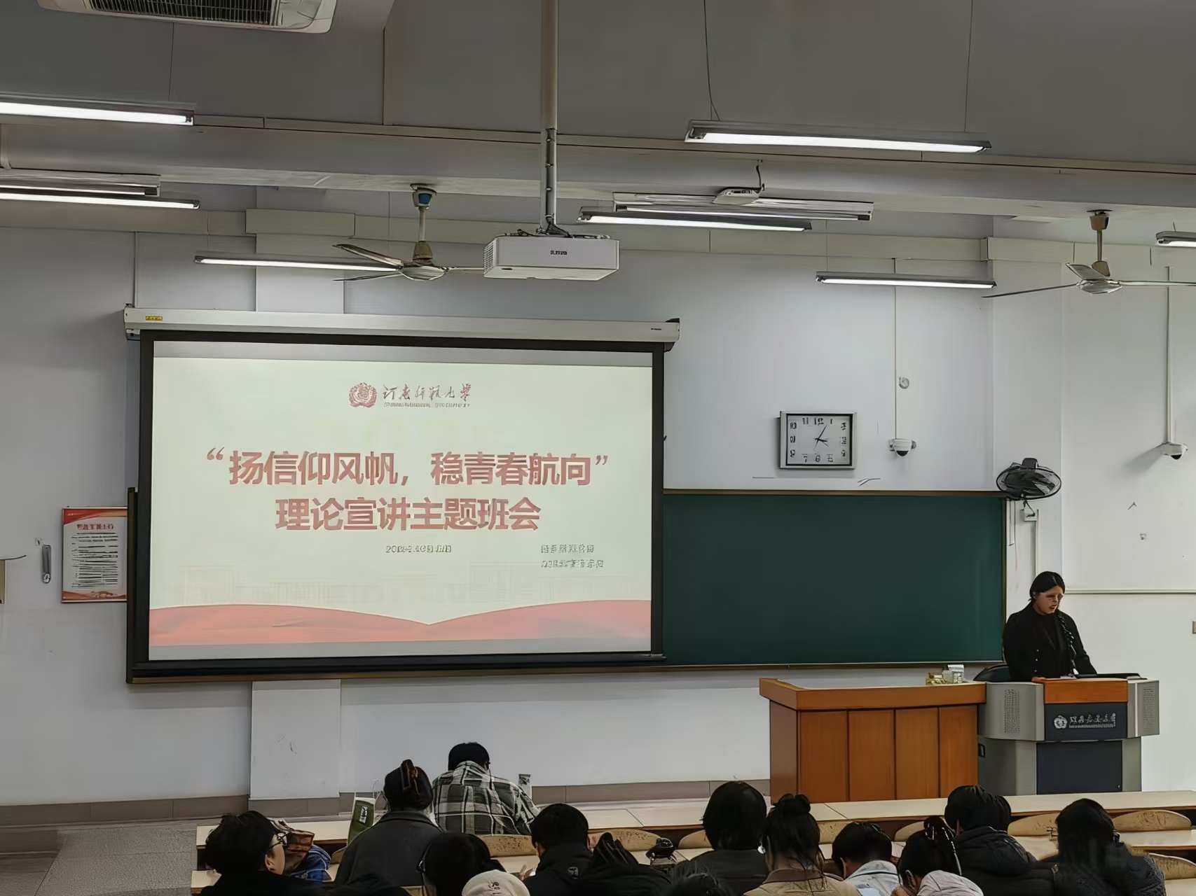 10月28日下午,我院2023级音乐学班在新五五四教学楼203教室开展“扬信仰风帆,稳青春航向”理论宣讲主题班会。本次活动积极响应“浇花浇根、育人育心”主题教育号召,聚焦理想信念教育与红色精神传承,引导学生筑牢信仰根基、明确青春方向。