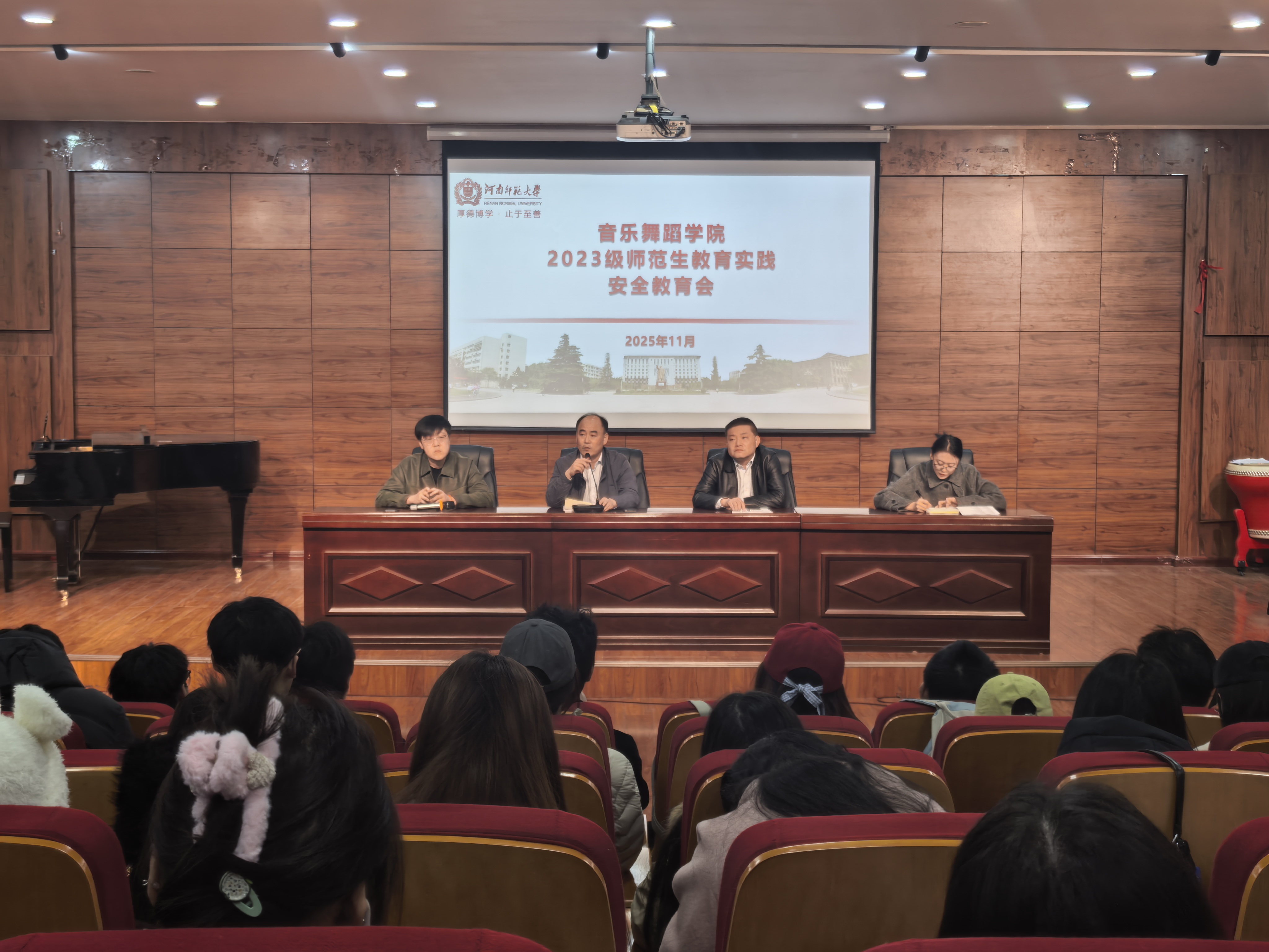 为全面贯彻教育实践理念,帮助师范生充分准备教育实践活动,11月29日下午,我院在音乐北楼501教室召开2023级师范生教育实践动员会。学院副书记曲嘉、副院长魏波出席会议,2023级辅导员尚晓丹和师范专业全体学生参加会议。会议由艺术实践与实习中心副主任张寒宁主持。