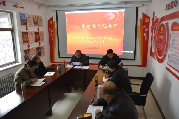 1124日下午,资产经营有限公司直属党支部在党建活动室,召开资产经营公司党风党纪教育活动,公司领导及党员干部参加教育活动。会议由直属党支部书记张新文主持。