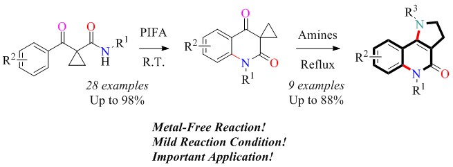Zhang, Z.; Gao, X.; Li, Z.; Zhang, G.; Ma, N.; Liu, Q.; Liu, T., PIFA-Mediated oxidative cyclization of 1-aroyl-N-arylcyclopropane-1-carboxamides and their application in the synthesis of pyrrolo[3,2-c]quinolinones. Org. Chem. Front. 2017, 4, 404-408. http://dx.doi.org/10.1039/C6QO00598E