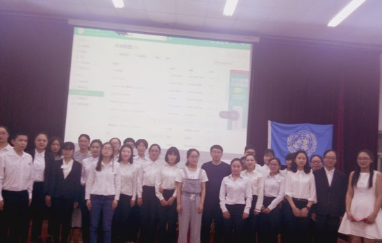 5月10日,政治与公共管理学院国际关系协会在西区万人餐厅三楼多功能报告厅举办第十四届“模拟联合国大会”。政治与公共管理学院2015级辅导员郭鹏,2015级班主任张占杰来到活动现场,与我院300余名学生共同观看此次大会。