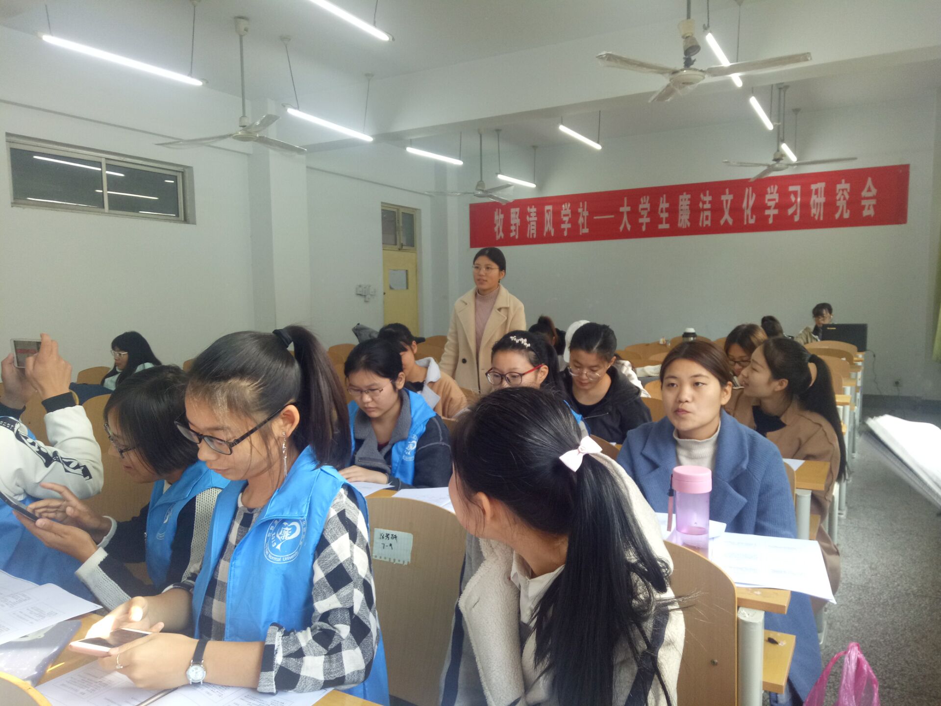 此次理论学习会议不仅加强了牧野清风学社成员对廉洁反腐文化的认识与了解,大学生在学习中去了解廉洁文化,增强当代大学生对廉洁文化的重视,而且有利于在学院形成廉洁诚信的文化氛围,有利于学生的未来健康成长。