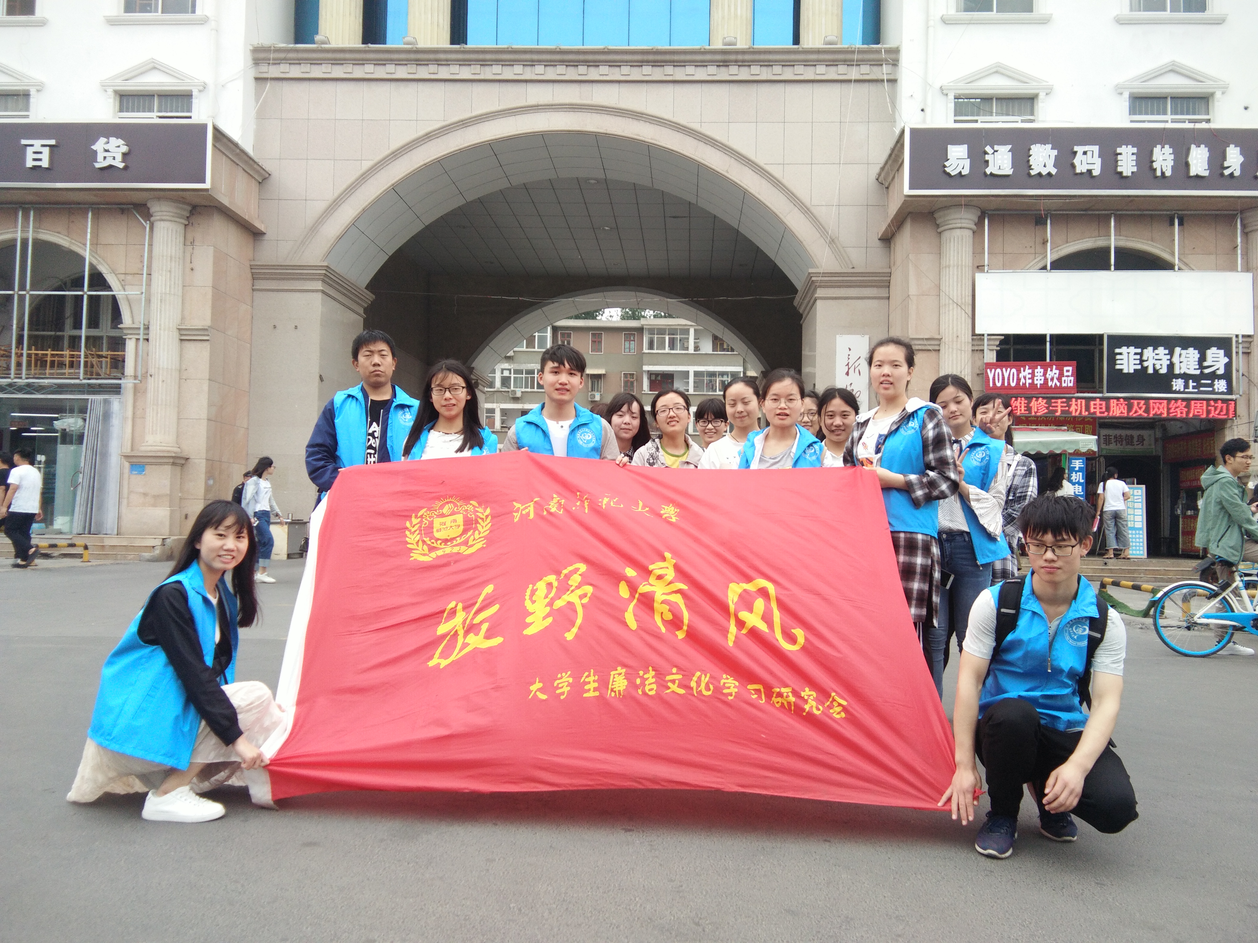 为响应国家对于反腐倡廉的号召,宣传廉洁文化。4月23日至5月12日,政治与公共管理学院牧野清风学社在河南师范大学、新乡医学院和河南科技学院针对在校大学生开展了三次以“廉洁文化知多少”为主题的社会调研,社团成员积极参与其中。