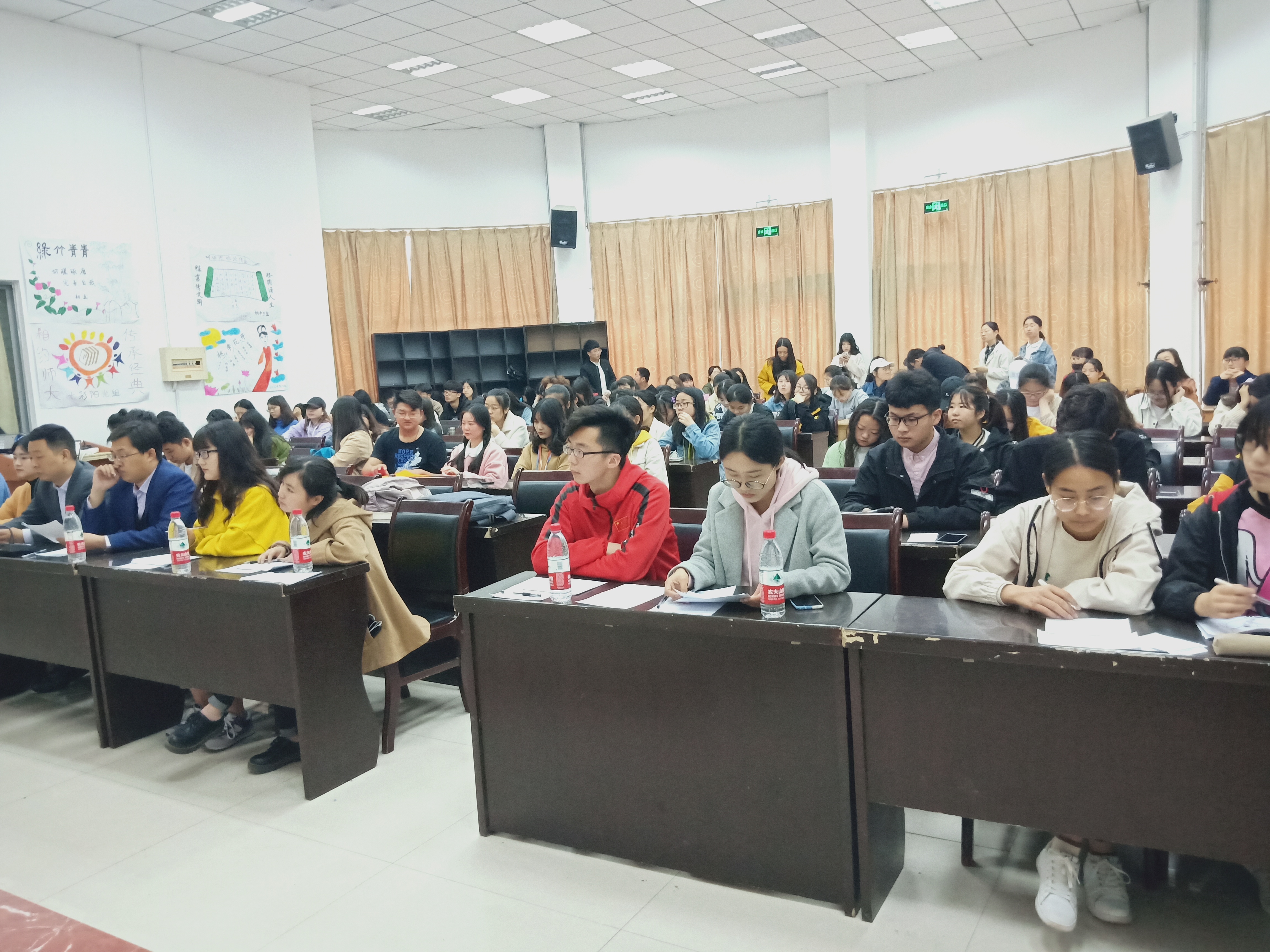 4月27日上午,政治与公共管理学院牧野清风学社在文学院报告厅举办以“激浊扬清弘正气,廉风化雨谱新篇”为主题的廉洁知识竞赛决赛。学院副教授艾昆鹏、张立国以及团学骨干代表担任比赛评委,学校近200人观看此次比赛。