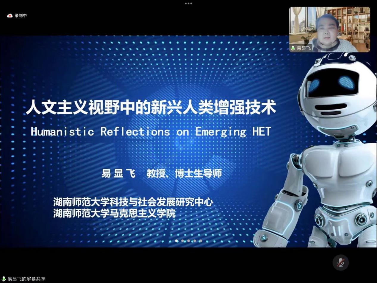 11月9日下午,应政治与公共管理学院邀请,国家社科基金重大项目首席专家、国家“万人计划”哲学社会科学领军人才、湖南师范大学易显飞教授在线上为学院师生作了题为《人文主义视野中的新兴人类增强技术》的学术报告,学院相关专业教师、研究生、本科生参与。报告由哲学学科负责人、校学报编辑部主任刘科教授主持。