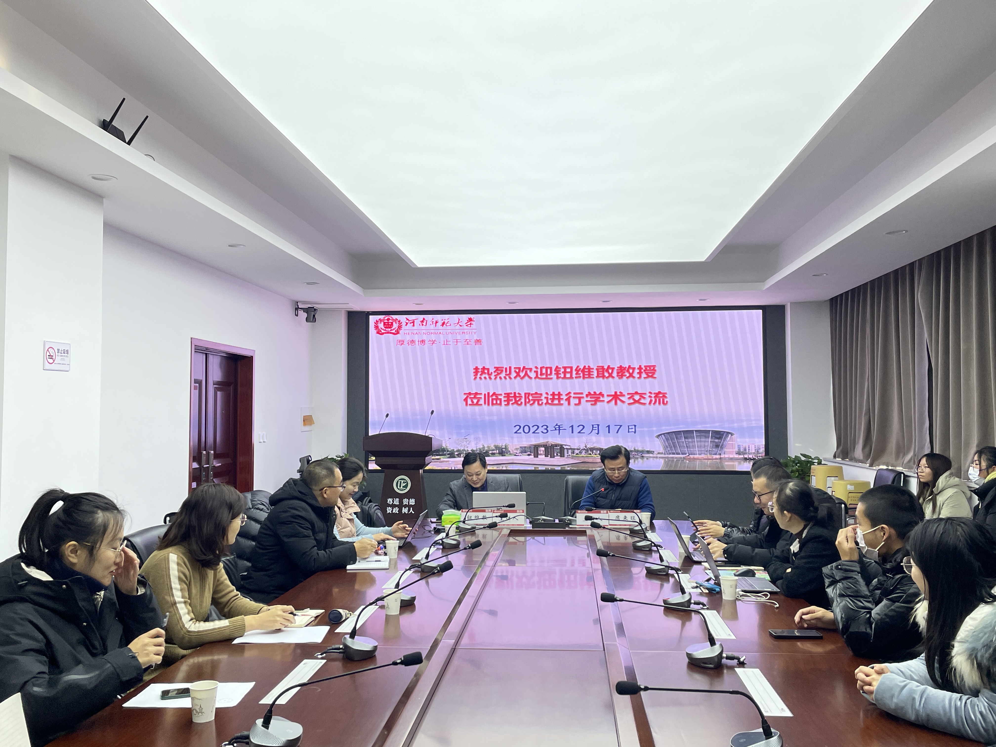 12月17日上午,应河南师范大学世界和平与发展研究院邀请,国家社科基金重大项目首席专家、北京建筑大学马克思主义学院钮维敢教授为学院师生作了题为《“一带一路”遭遇地缘冷战思维挑战学术研究现状与再构想》的学术报告。学院相关专业教师、研究生、本科生参与。报告由研究院院长席来旺教授主持。