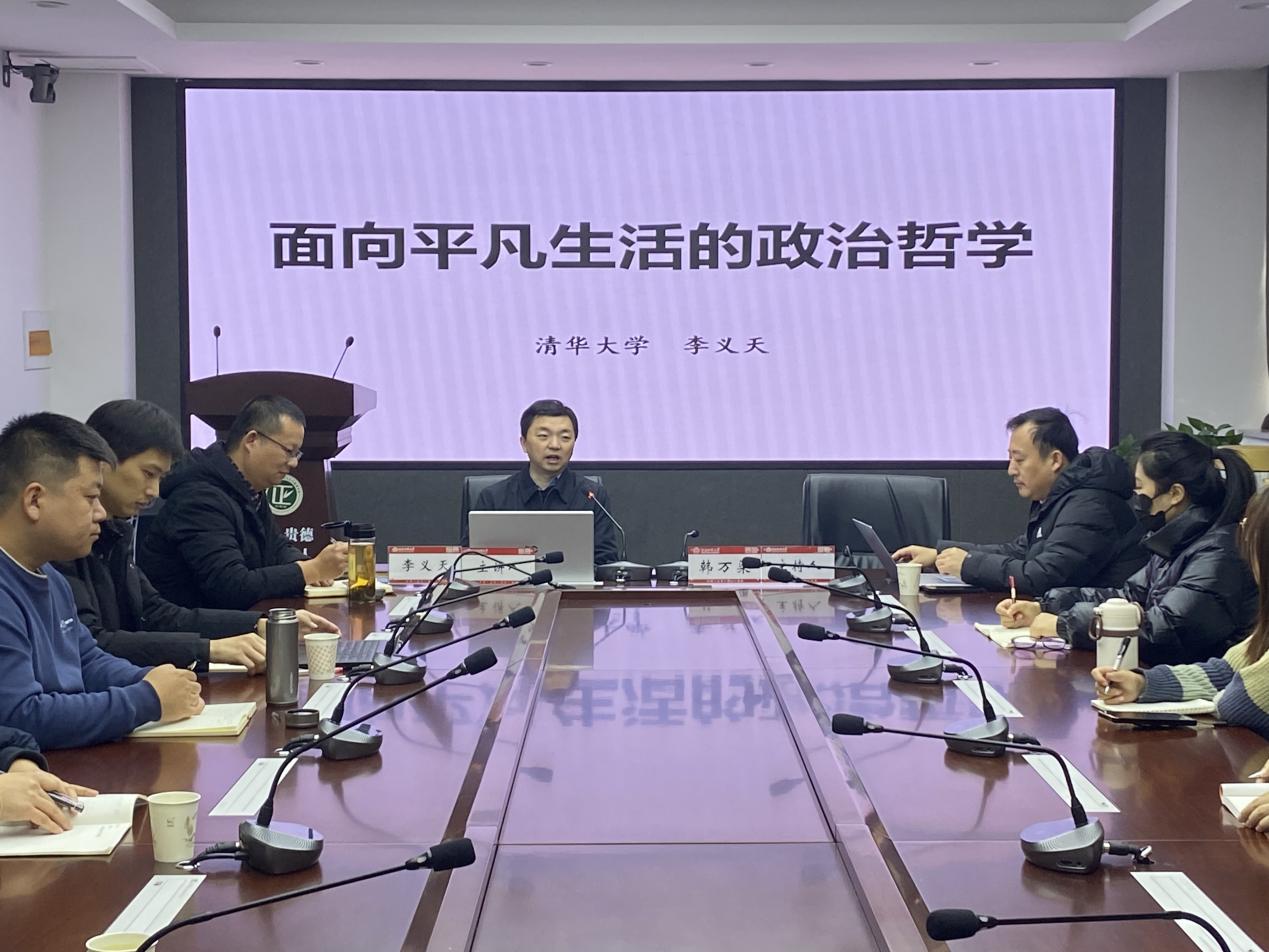 12月20日上午,应政治与公共管理学院邀请,教育部“长江学者奖励计划”青年学者、清华大学马克思主义学院长聘教授李义天为学院师生作了题为《面向平凡生活的政治哲学》的学术讲座。学院相关专业教师、研究生和本科生参与。报告由学院副院长韩万渠教授主持。