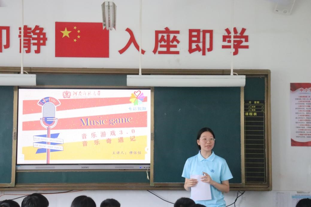为提升被支教学生音乐素养和审美素养,7月9日下午,河南师范大学政治与公共管理学院“方田育青禾”爱心支教服务团于方城县第五高级中学附属学校开展“奇遇记”主题音乐课程。