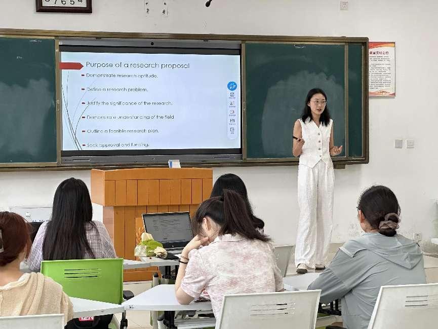 7月16日下午,都郁围绕如何撰写研究计划展开分享。她分别从研究计划的标题、摘要、引言、学术史回顾、研究设计与方法、研究可行性、预期结果、时间线、预算、贡献、结论以及参考文献等方面进行详细讲解。7月17日上午,都郁主要讲解了海外留学申请流程的具体操作。她首先认为个人研究方向需要在参与的项目中结合兴趣逐渐去探索发现。接着她述了申请国外项目的一些要点并给出建议。最后,都郁对与会学生的研究计划提出了针对性的建议。